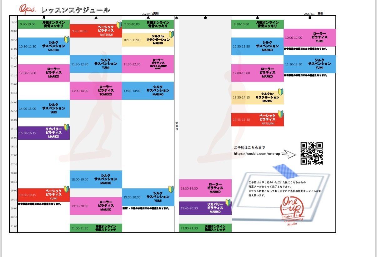 いつもピラティス&コンディショニングスタジオONE UPをご利用いただきありがとうございます!!